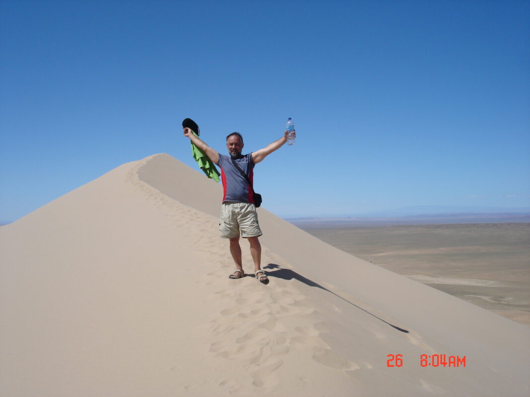 V Gobi jsem byl už 5x. S Jirkou 4x a Jirka také 4x na dunu Chongorin Els vylezl. V roce 2011 mě přemluvil a tak jsem i já, věčný pozorovatel ostatních nadšenců, dunu pokořil. No a od té doby už zase fotím ze spodu. I to jsou hezké fotky 🙂