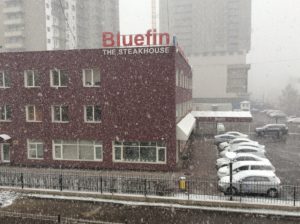 Co bylo dnes určitě zajímavější, tak to byla krásná ukázka rozmaru jarního počasí v Mongolsku. Jen jsem rozlepil víčka už mi bylo jasné, že se něco děje. Je takové zvláštní ticho i ta auta venku troubí míň a méně hlasitě. Zvuky od silnice byly navíc podezřele mlaskavé.