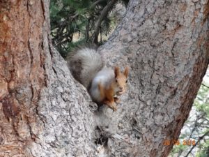 A ještě jsme tam potkali jednu kamarádskou veverku. Ta se klidně přišla podívat jestli nemáte něco na zoubek v ruce. A když nic, my jsme totiž nic neměli, bohužel, tak se ani nezlobila.