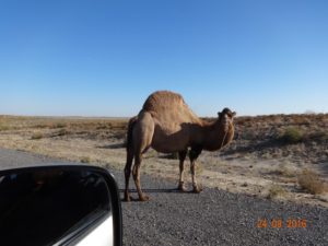 Tady jsme taky zaznamenali jednohrbé velbloudy. Kdo je sem přivezl? Mně tady teda moc nesedí. Neseděli, motali se po cestě.