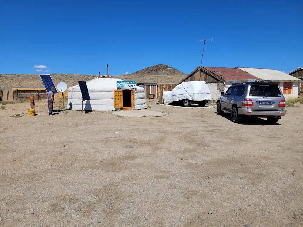 Hned za horizontem se objevuje skupina jurt.