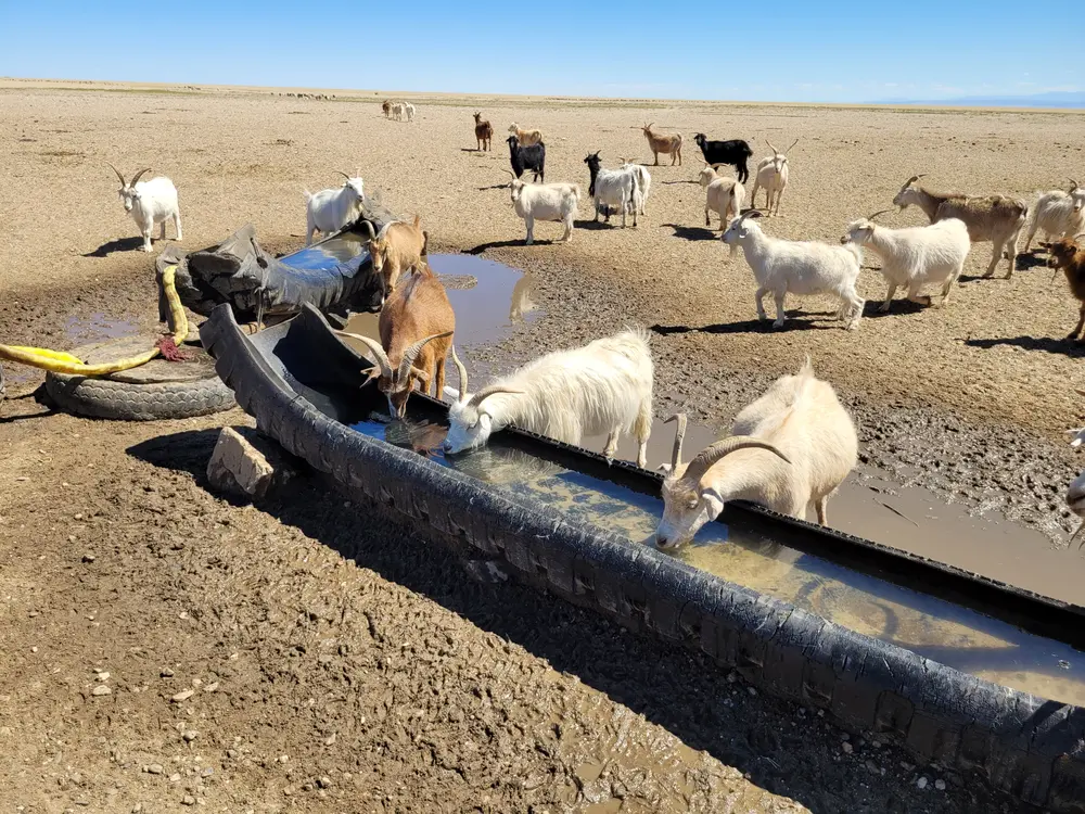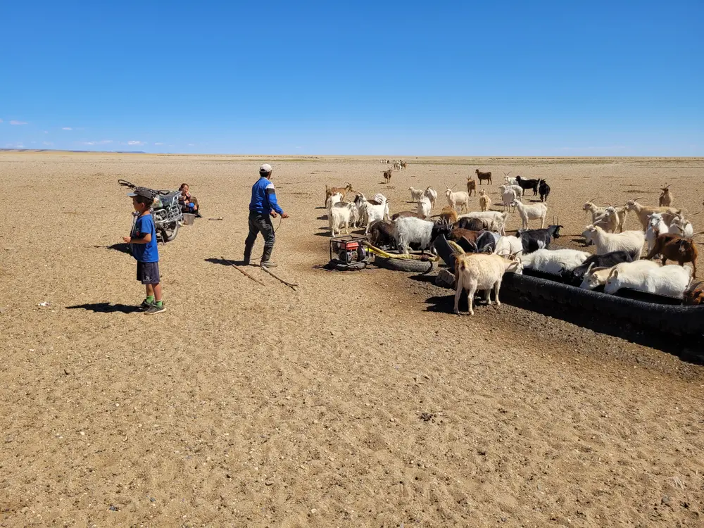 Step je v těchto končinách suchá a travičky pro skot je docela málo. Sem tam je vyvrtaná studna a sem pastevci přiženou stáda, aby se napojila. No, ono stačí u studny nastartovat generátorek, spustit čerpadlo a začít čerpat do provizorních koryt. Ta jsou často vtipně vyrobena ze starých traktorových pneumatik. Zvuk agregátu, který se nese tichou stepí probudí ve zvířatech reflex, který studoval už dávno, dávno pan I.P.Pavlov. Je to reflex podmíněný. Podmíněný zvukem generátoru. Generátor = voda. A tak kozy a ovce mažou stepí z celého okolí, kam ucho dosléchne.