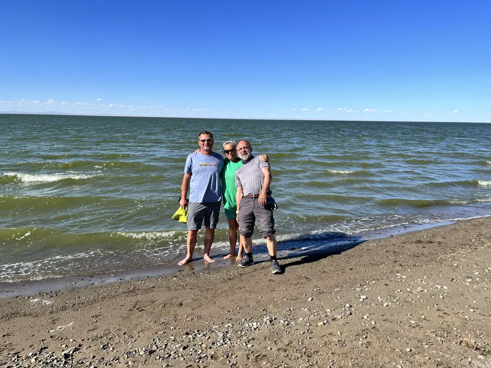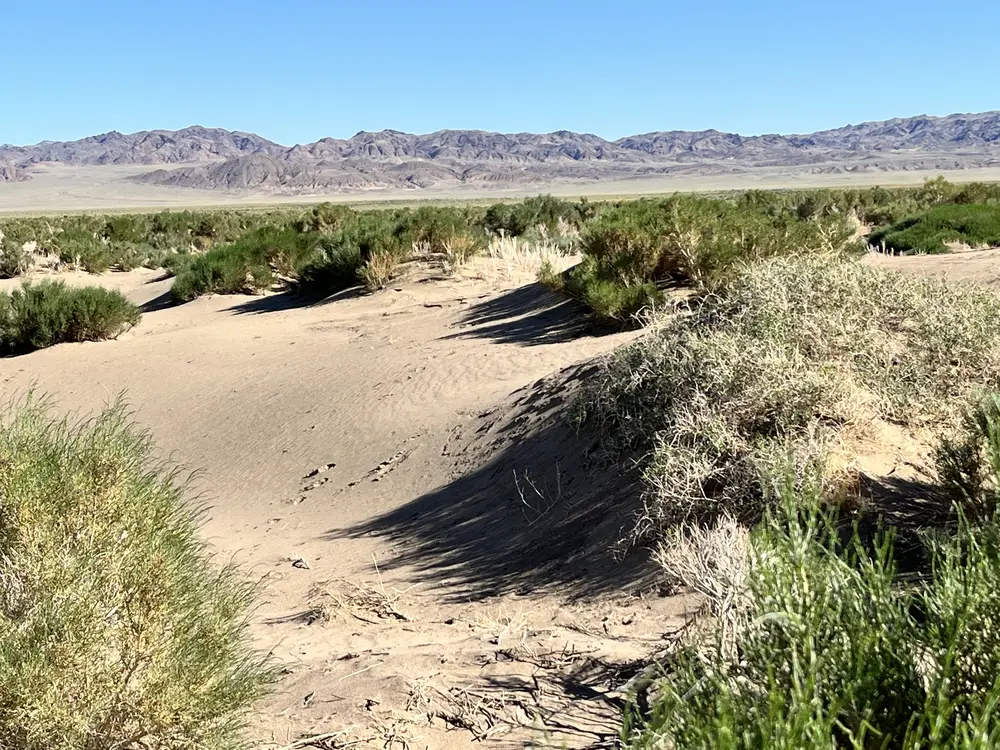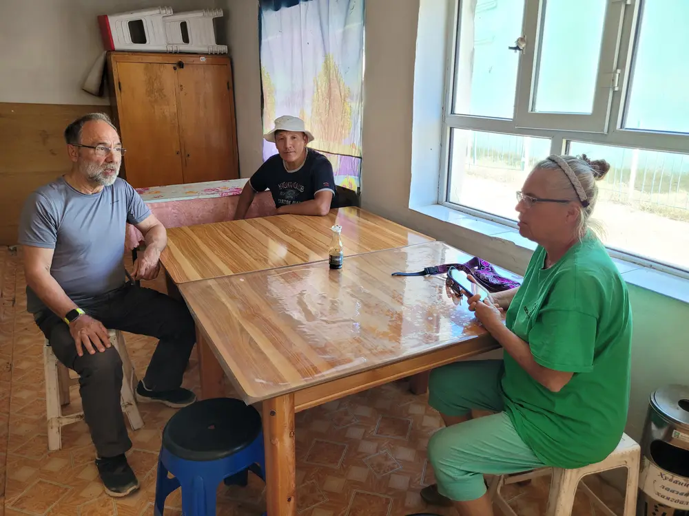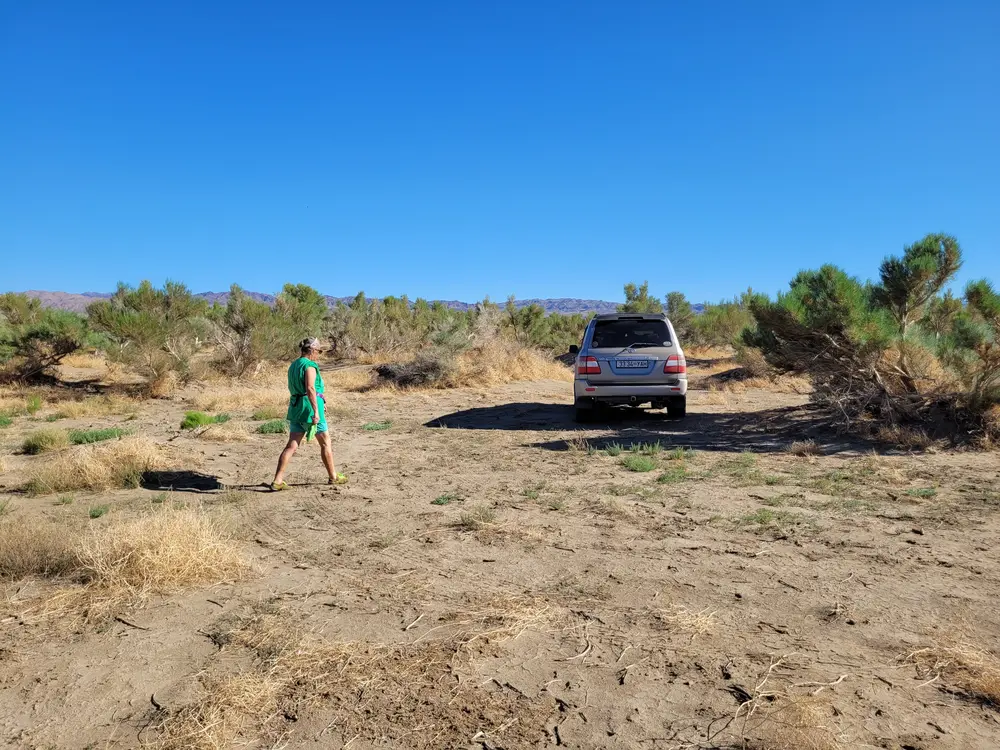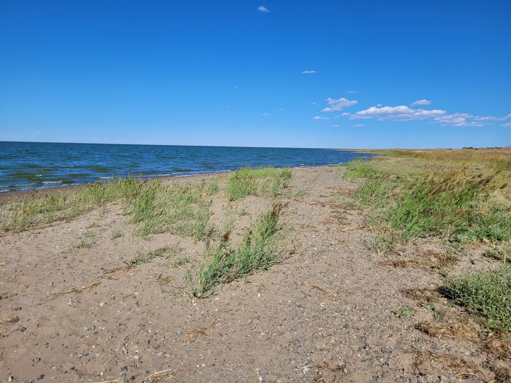 Ovce a kozy jsme nechali za sebou a jedeme dál. Step se začíná pozvolna měnit v polopoušť. Rostliny jsou jen tvrdé houževnaté křoviny a stále víc je v cestě písek. V dálce vidíme jezero a máme chuť se v tomto poněkud horkém dni vykoupat. Jen se snažíme najít cestu, která by vedla ke břehu.
