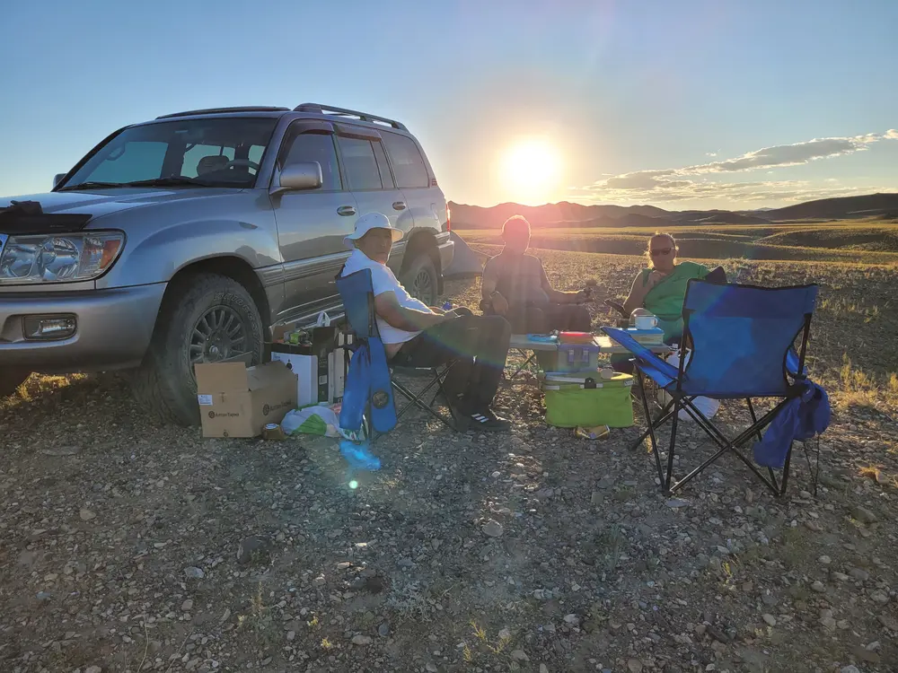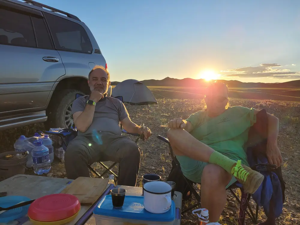 Nocování pod stanem je v Mongolsku vždycky velký zážitek. Krásný večer, hvězdná obloha, no a potom už dramaticky klesající teplota po západu slunce. Tak dramaticky, že když musíte v noci ze spacáku, tak jde o velké hrdinství. O to krásnější jsou rána, protože sluníčko hned po východu opravdu krásně hřeje.