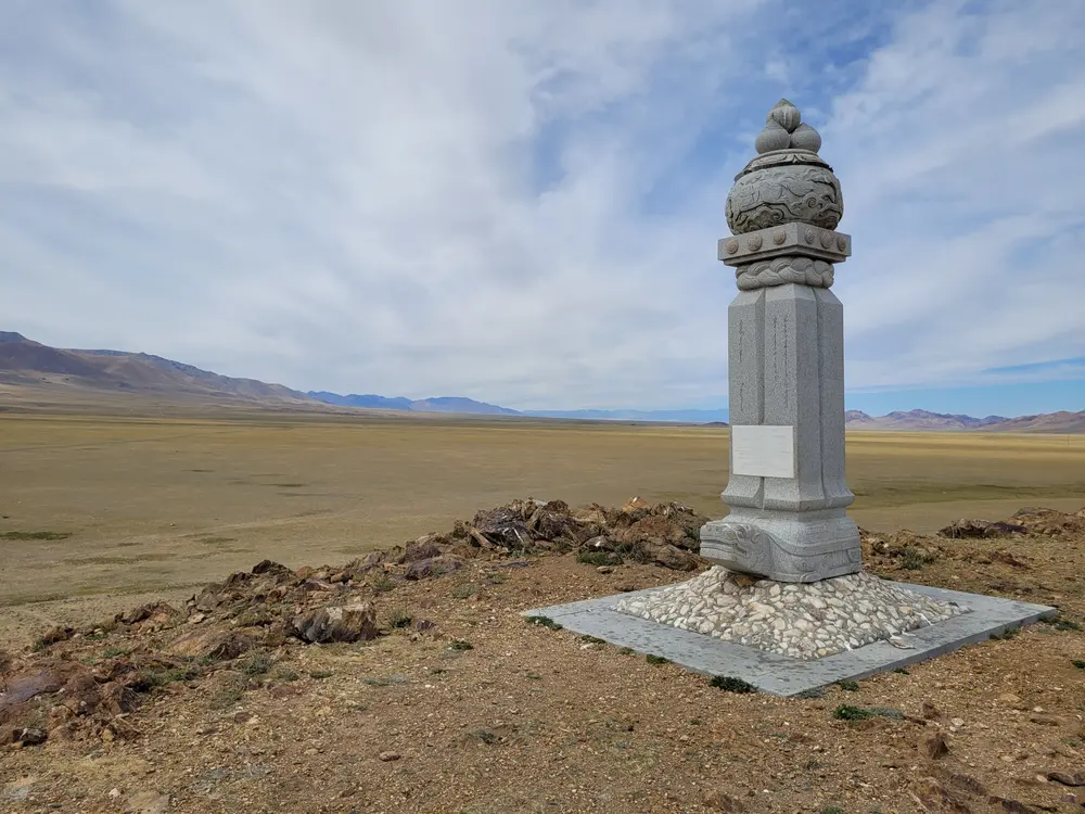Následující den ukrajujeme další kilometry. Plochá step, tu a tam známka lidské přítomnosti. Průsmyk v horském hřebeni a další dlouhé údolí. Někdy narazíte na nějaké opraveneé posvátné místo a zase jedete dál.