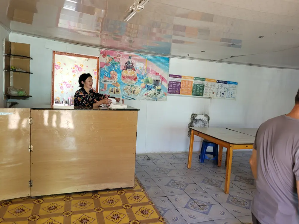 Je to motorest, motel a odpočívadlo pro ty, kteří tudy jedou. Až na místě jsem si všimnul, že je to poloha strategická. Tady se z asfaltky odpojuje stepní cesta a tou se vydáme my. Ale napřed se musíme posilnit, protože jsme na cestě už několik hodin a slunce máme přímo nad hlavou.