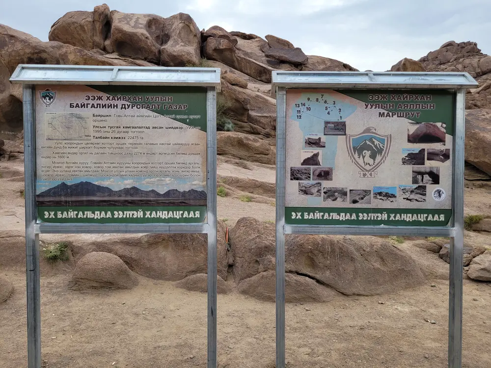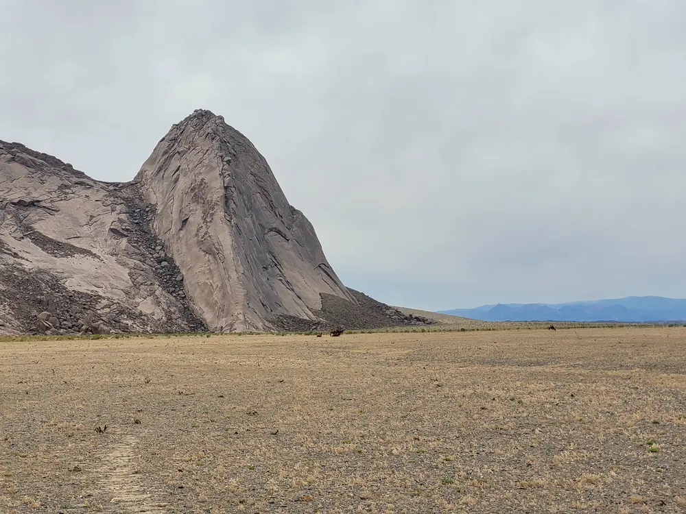 A podle cedule u cesty jsme měli zjistit, že bude následovat masiv Eedž Chajrchan, dnes chráněná krajinná oblast. Ta špička za nejbližším kopcem, to je ono, ale ještě musíte přejet jednu dolinu.