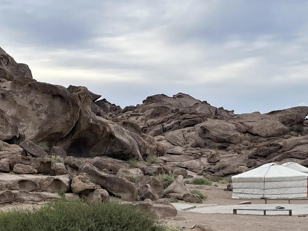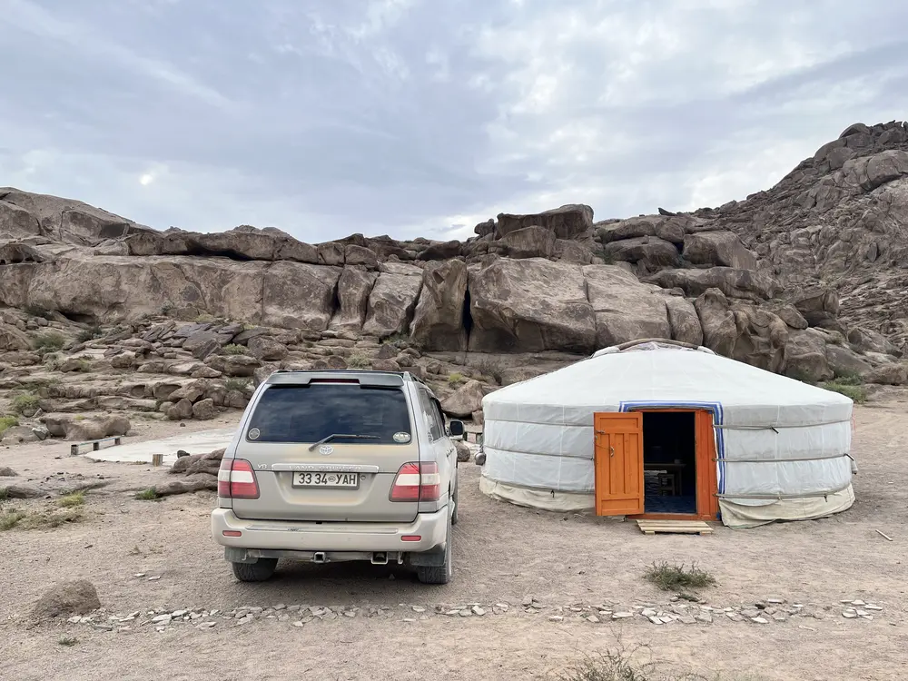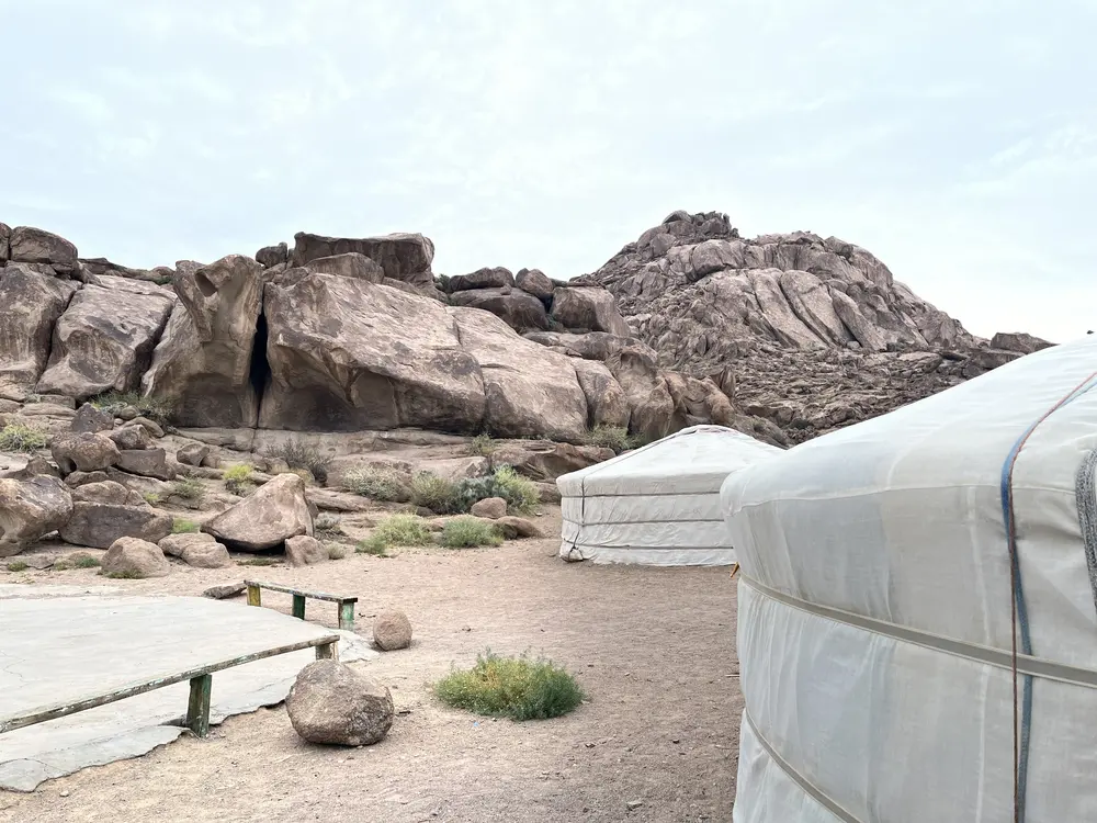Jsme na místě. Malý a pěkný jurtový kemp a nádherné kamenné scenérie.