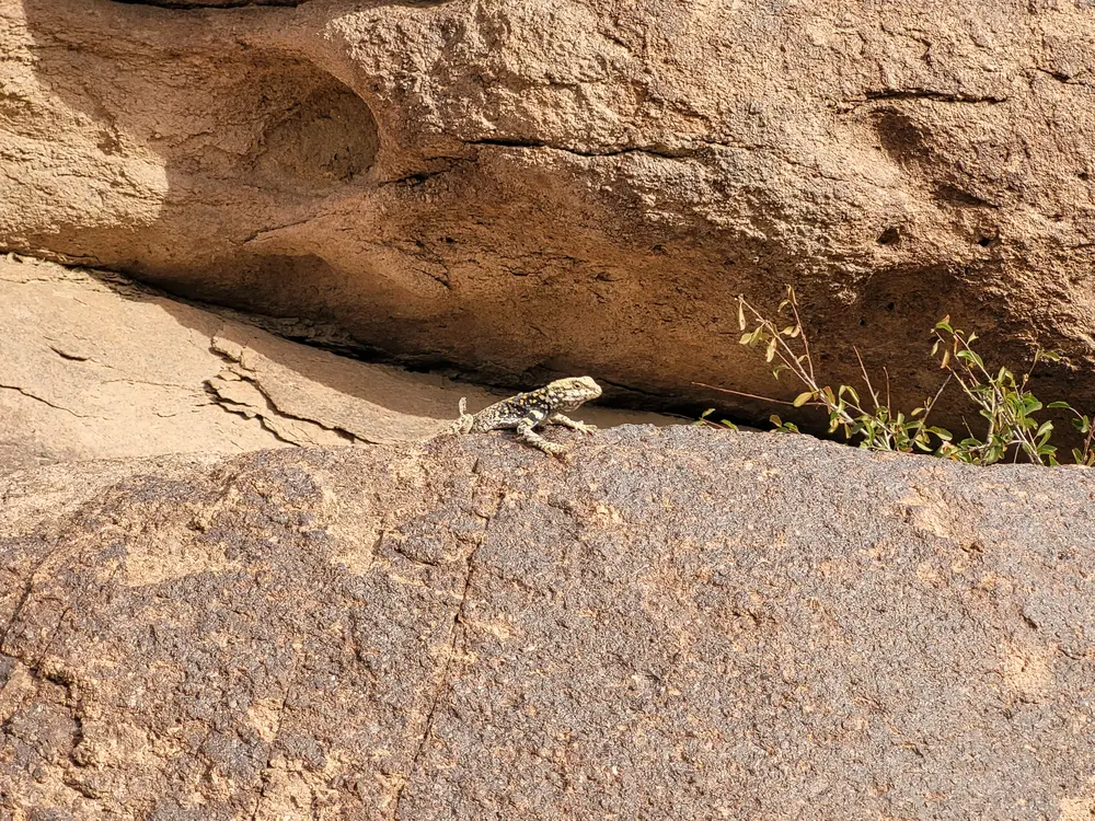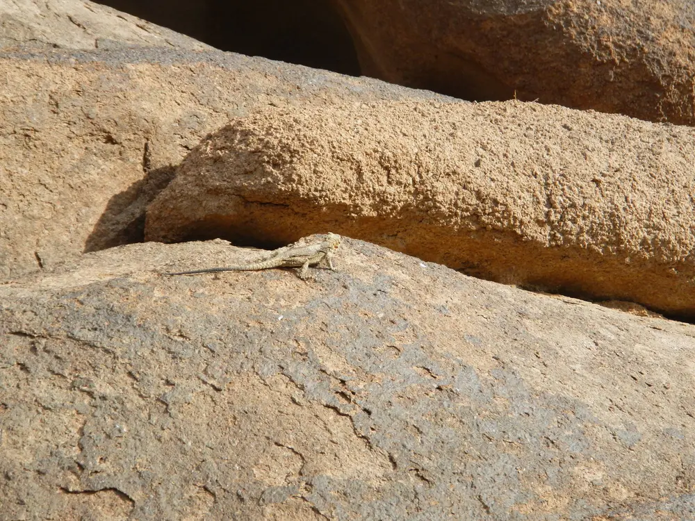Po mírném stoupání do skal se cestička změnila na jednotlivé stupně a některé byly na mně už opravdu vysoké. V balvanech nás neustále sledovala malá očka ještěrek. Těch je tady fakt dost. Oslovoval jsem je „malí dinosauři“. Co bylo dost vtipné, nepohrdly nabízenými drobky ze sušenek a odpovědně se jimi ládovali.
