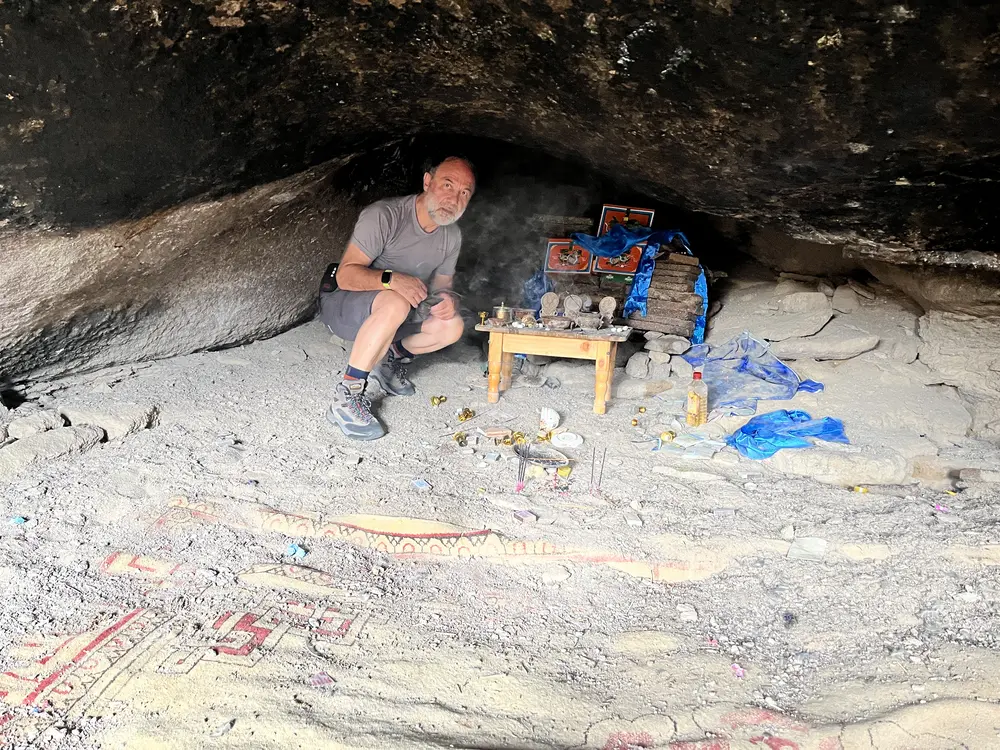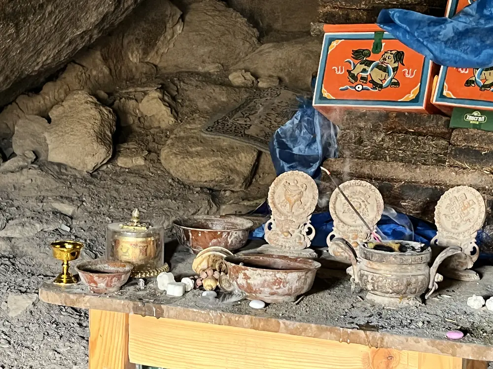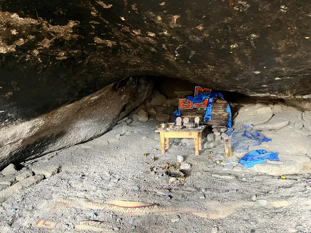 Údajně tady přebýval buddhistický mnich Ravdan. Nedaleko vyla ve skále taková malá místnůstka. Mnich tam už nebyl, nebo si šel zrovna nakoupit.