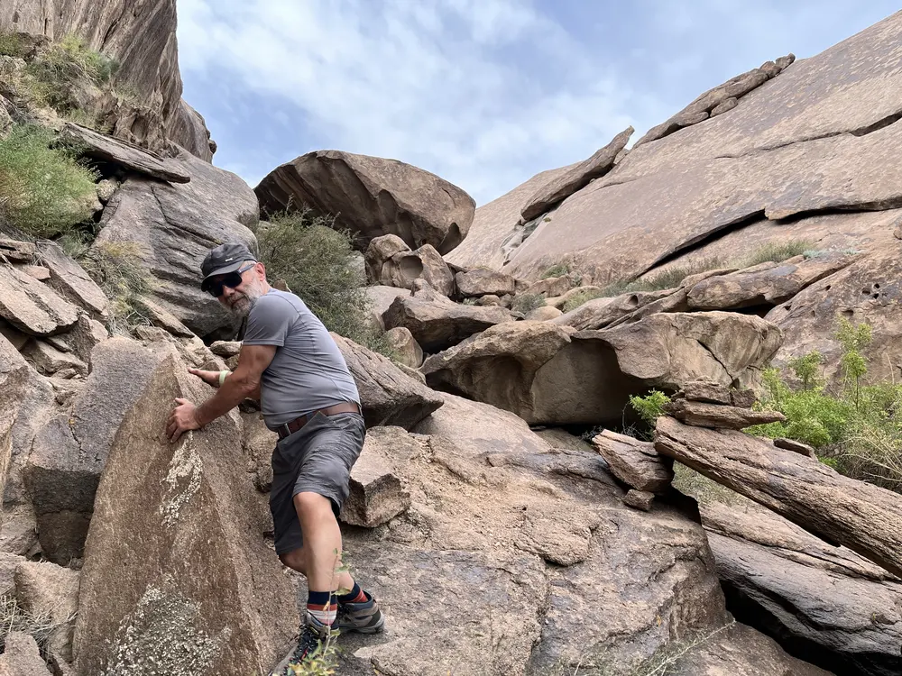 A další a další nádherné tvary okolních skal a balvanů. Chvilky odpočinku, rozjímání a pomalý sestup. Tudy žádná pěšinka nevedla, ale byli jsme přesvědčeni, že máme správný směr.
