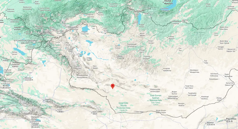 Masiv Eedž Chajrchan je pod 45. rovnoběžkou poblíž 96 poledníku.