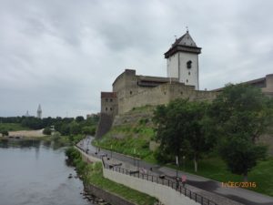 Sjeli jsme z kopečka na most přes řeku Narva a zařadili se do fronty na mostě. Postupujeme co hodina to pět centimetrů. (To je samozřejmě trošku nadnesené, ale bylo to fakt na nervy). U ruské závory nám šikovné děvče dalo dva formuláře k pasům a dvě celní prohlášení. Většina z vás si to už ani nepamatuje.