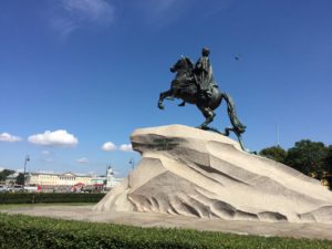 Car Petr I Veliký, ten se už neprojíždí, ale dominuje parku u Něvy.