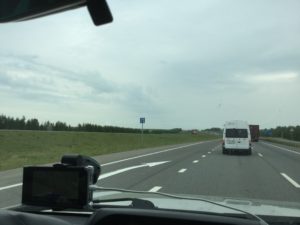 Tentokrát jedeme nejrychlejší cestou. No tak vida i v Rusku jsou dobré cesty. Většinou čtyřproudové rychlost kolem 90 km/h. Ano i zde se už dodržuje rychlost. Takovou síť radarů jsem ještě neviděl. Tolik policistů kolem silnic s radary jsem taky neviděl. Řidiči jsou kolegiální a vzájemně se upozorňují. Policisté jsou vynalézaví a tak měří na druhé straně do protisměru a když ptáčka načapají, přeběhne jeden všechny pruhy na druhou stranu a inkasuje. Je to úžasný výkon.