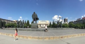 Postavili jsme auto u hotelu vzali taxika a jeli do centra s cílem prohlédnout a vrátit se zpět metrem a autobusem. Slečna na recepci nám vše důkladně vysvětlila a jedem. Start prohlídky na centrálním náměstí na náměstí Lenina. A kluk je tady a s celou partou.