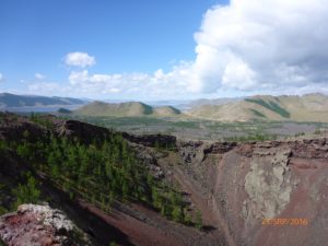 Naše cesta směřovala ke kaňonu řeky Čuluut (další z mnoha mongolských atrakcí) a dále ke čtvrtohorní sopce Chorgo a jezeru Terchijn Cagaan Nuur. Vše bohužel v čediči, můj vztah k této hornině už znáte.